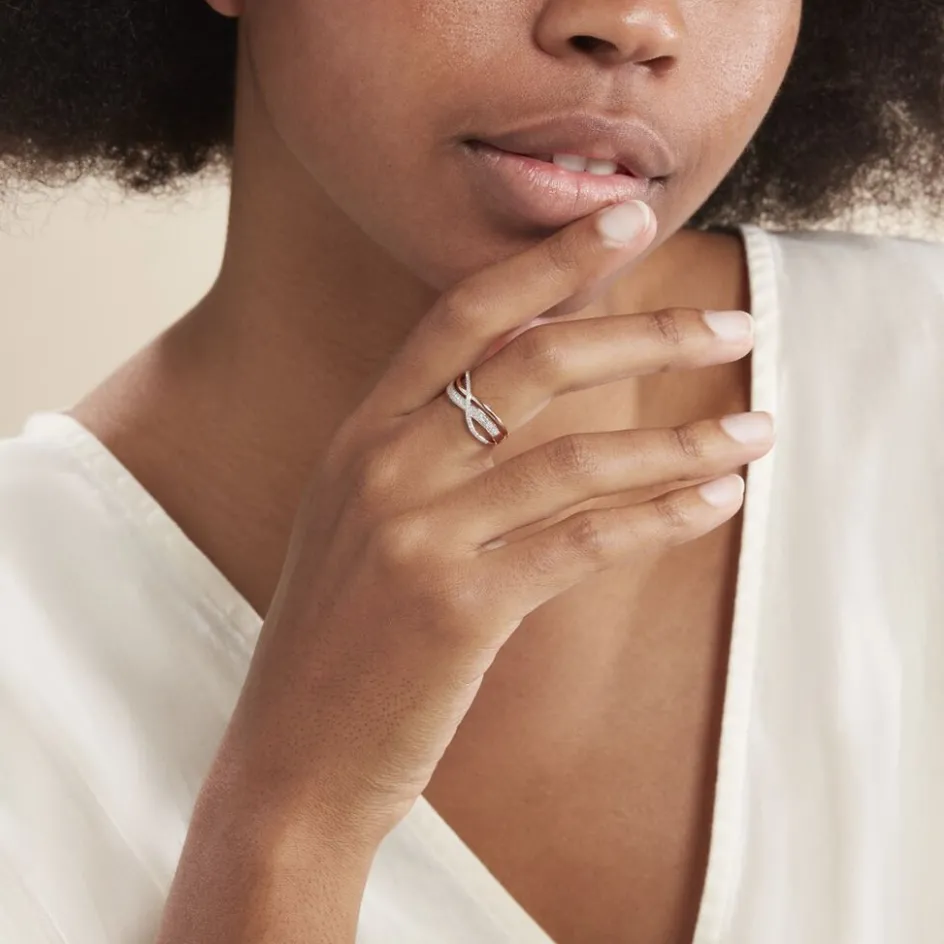 Bague Or Rose 375/1000 Diamants Blancs Croises