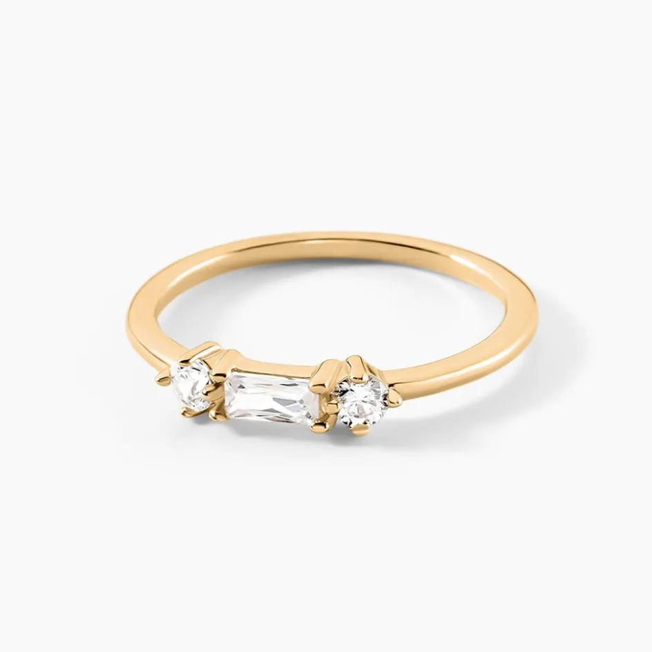 Bague Plaqué Or Jaune Baguette Oxyde De Zirconium Accompagné Oxydes