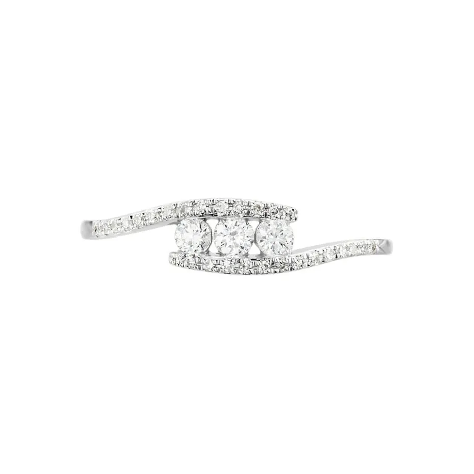 Bague Or Blanc 375/1000 Eternite Trilogie Diamants 0.22cts Mm