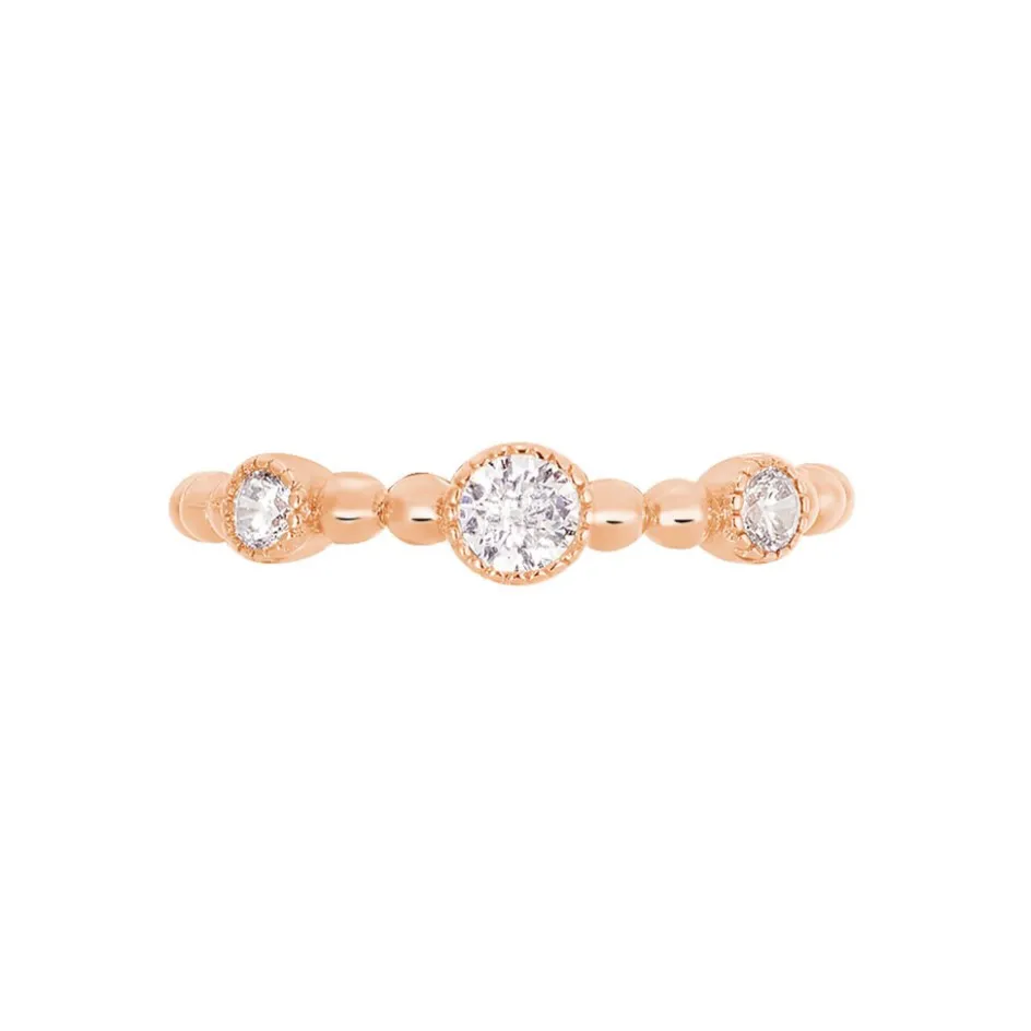 Bague Argent Rose 925/1000 Effet Perle Avec Oxydes De Zirconium