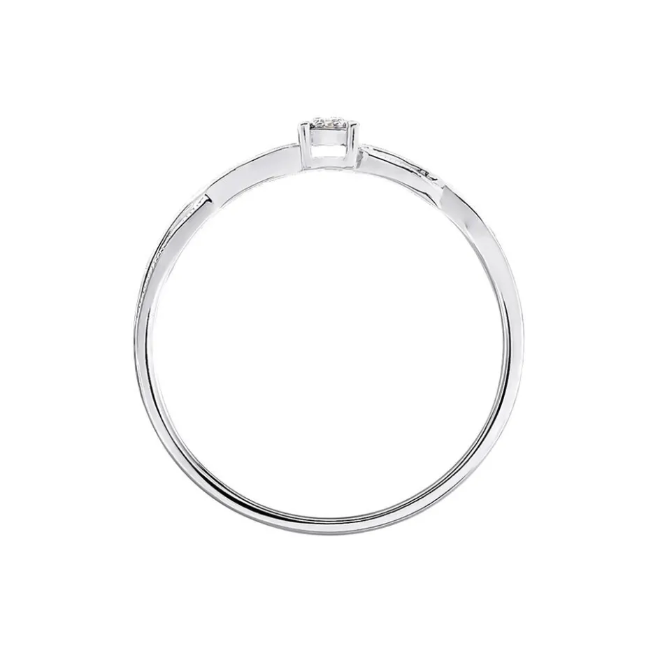 Bague Solitaire Or Blanc 375/1000 Multipierres Diamants Ronds Corps De Bague Torsadé Micro Serti 0.0160 Cts