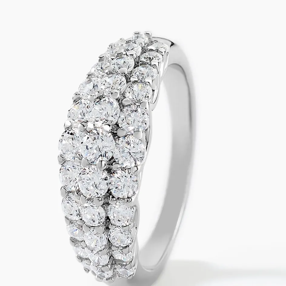 Bague Argent Blanc 925/1000 3 Rangs Pavage Oxydes De Zirconium T48