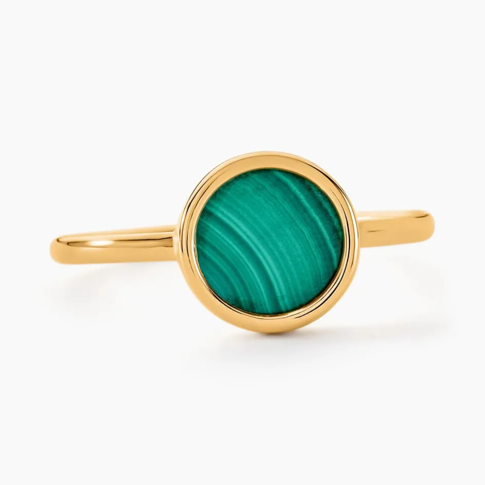 Bague Or Jaune 375/1000 Cercle Malachite Verte