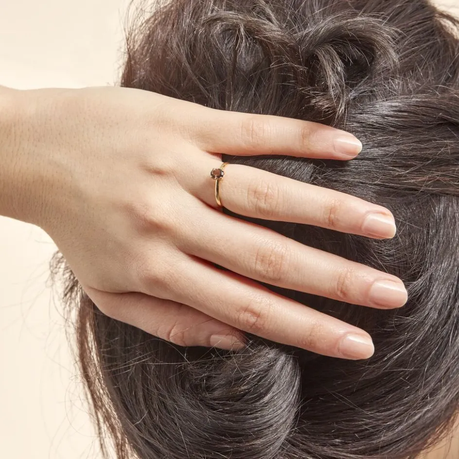 Bague Or Jaune 375/1000 Quartz Fume Oval Serti 4 Griffes