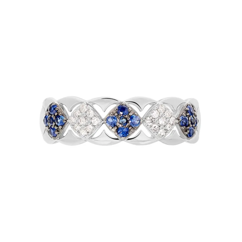 Bague Or Blanc 375/1000 Pavage Saphirs Et Diamants
