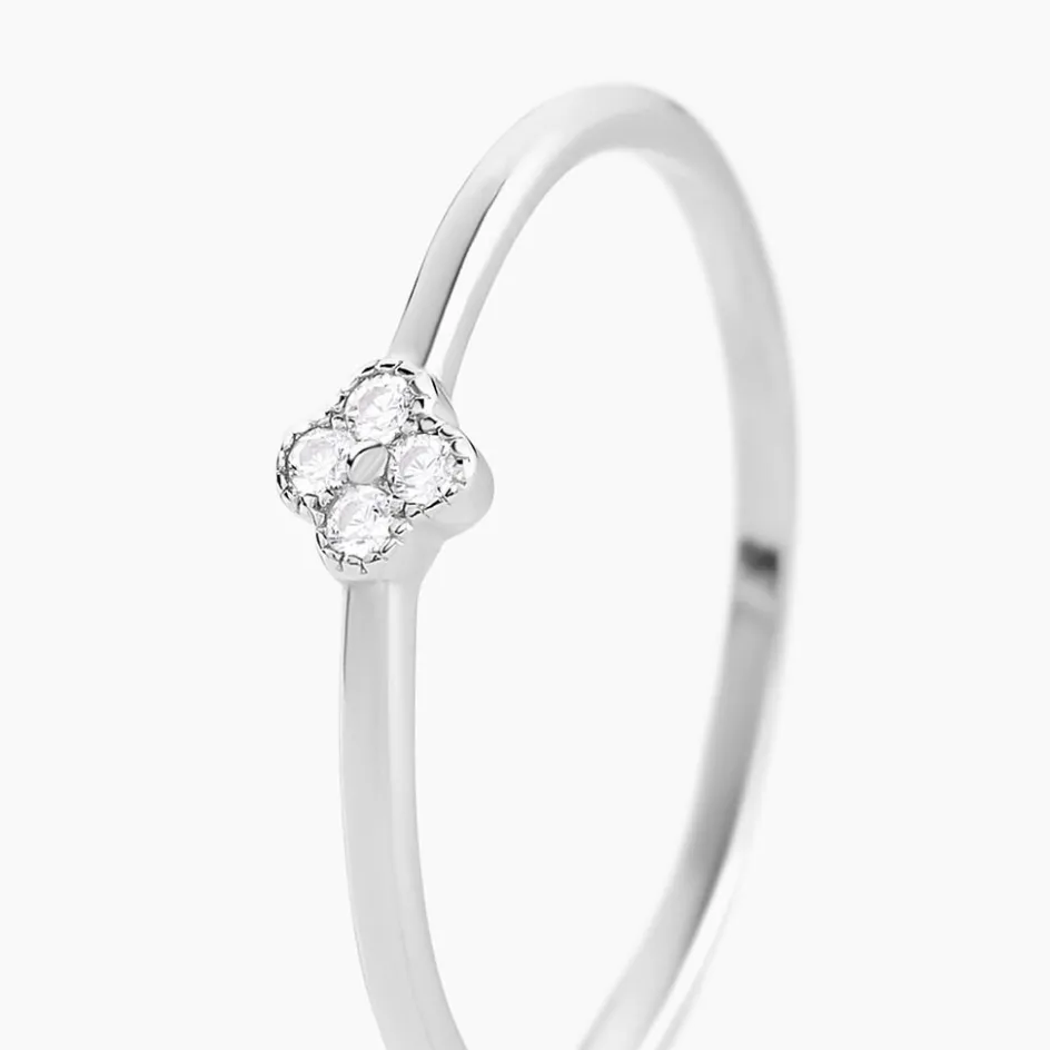 Bague Argent Blanc 925/1000 Fleur Oxydes De Zirconium Serti Clos