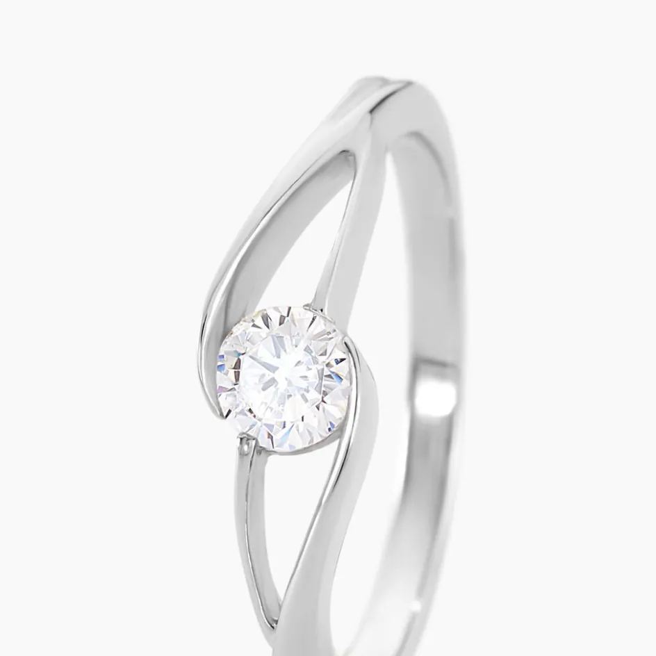 Bague Argent Blanc 925/1000 Corps De Bague Oxyde De Zirconium Central Serti Couteau