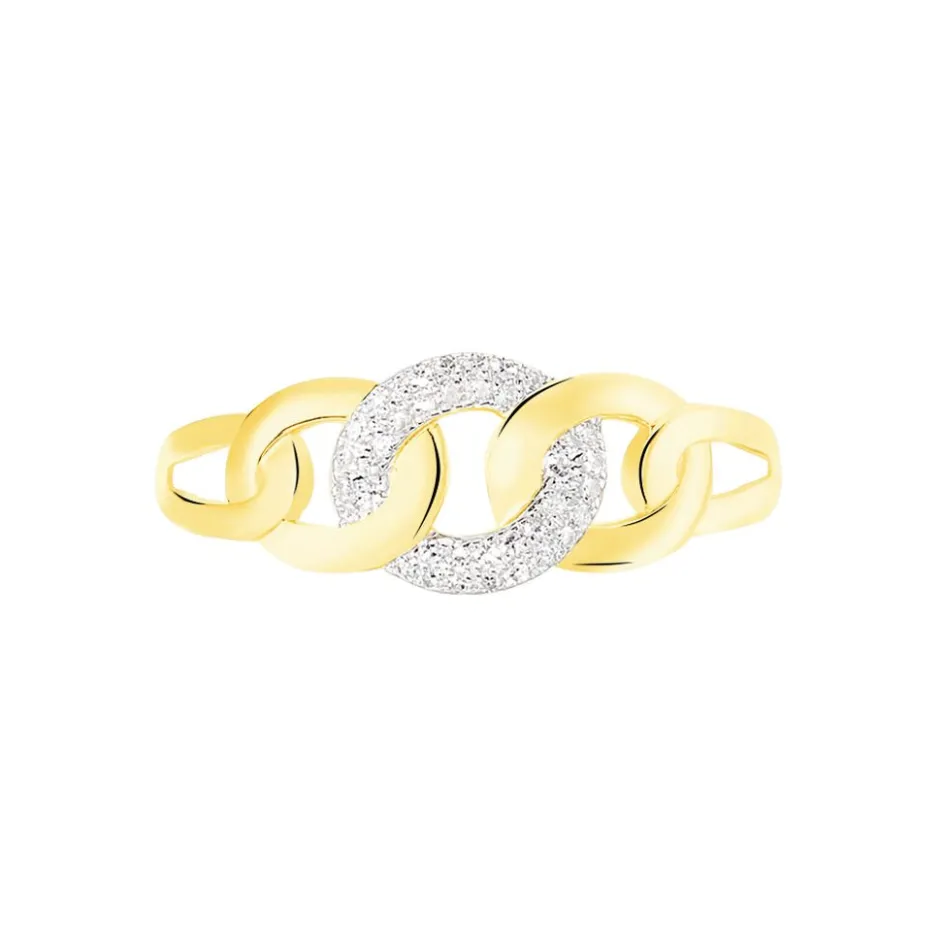 Bague Or Jaune 375/1000 Maillons Diamants 0.1ct Micro Serti