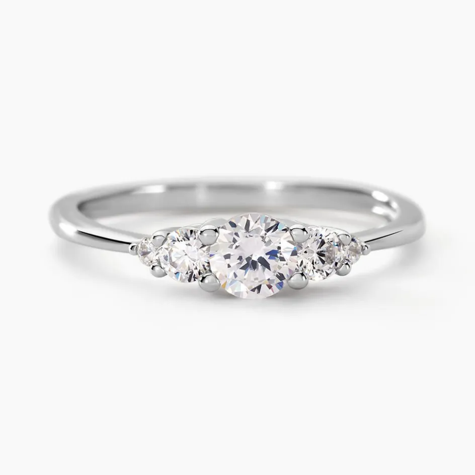 Bague Argent Blanc 925/1000 Oxyde De Zirconium Central Accompagne Oxydes De Zirconium
