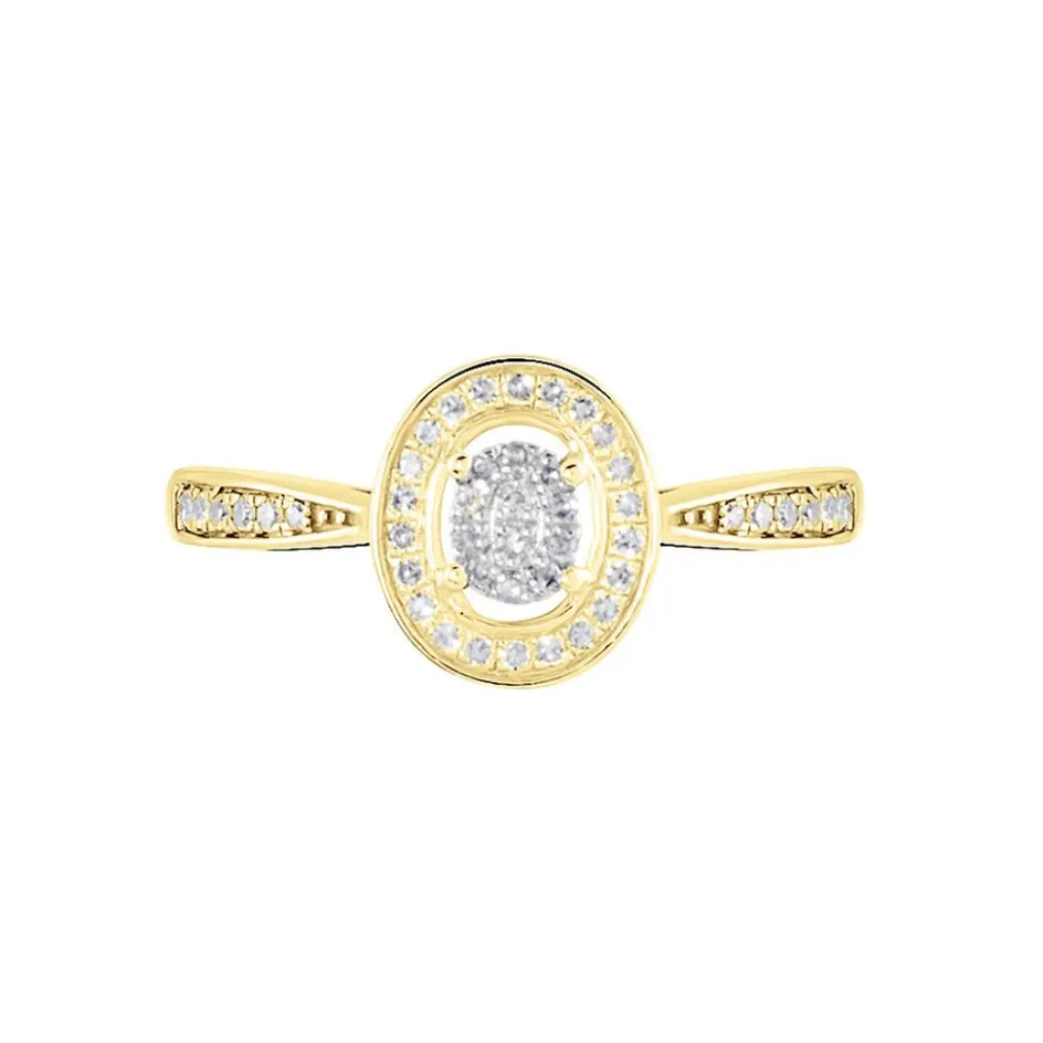 Bague Or Jaune 375/1000 Multipierre Accompagne Pavage Diamants
