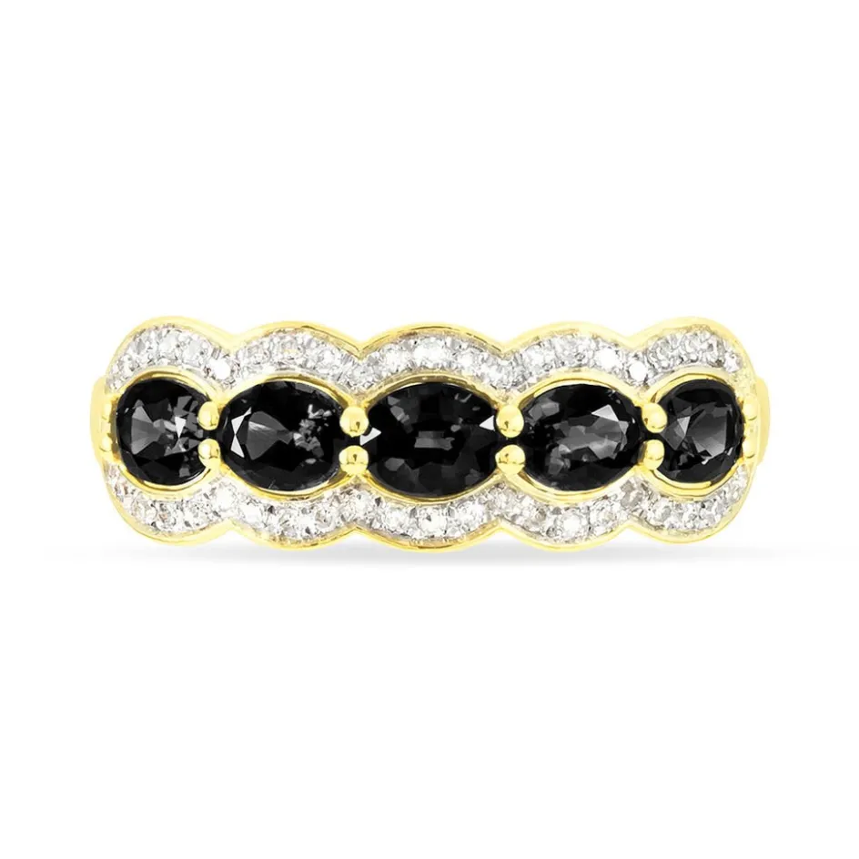 Bague Or Jaune 375/1000 Agates Noires Et Diamants