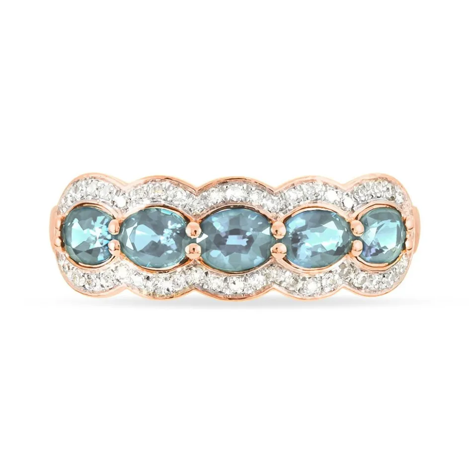 Bague Or Rose 375/1000 Aigues Marines Et Diamants