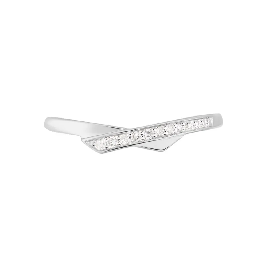 Bague Or Blanc 375/1000 Pavage Diamant Croise