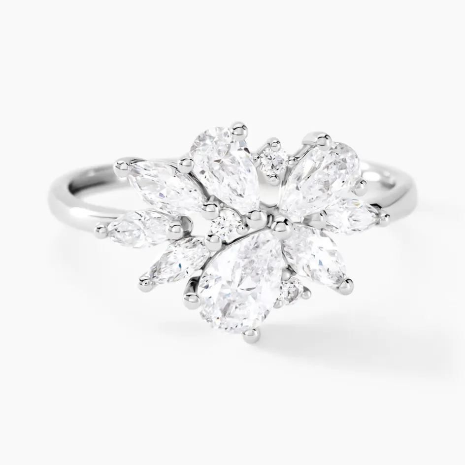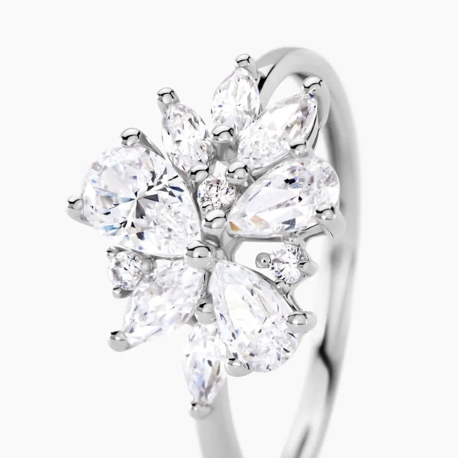 Bague Fleur Or Blanc 375/1000 Multipierres Gouttes Et Navettes Oxydes De Zirconium Serti Griffes
