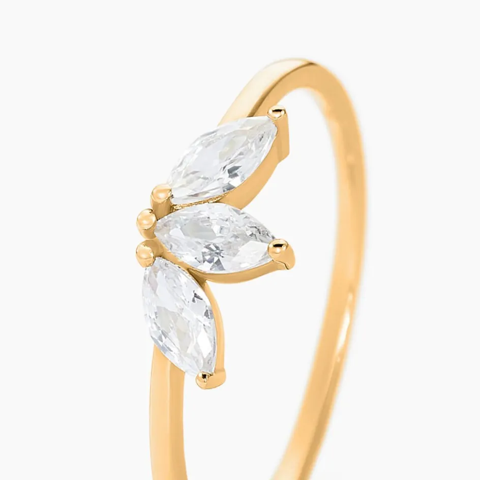 Bague Or Jaune 375/1000 Fleur Oxyde De Zirconium Navettes Serti Griffes