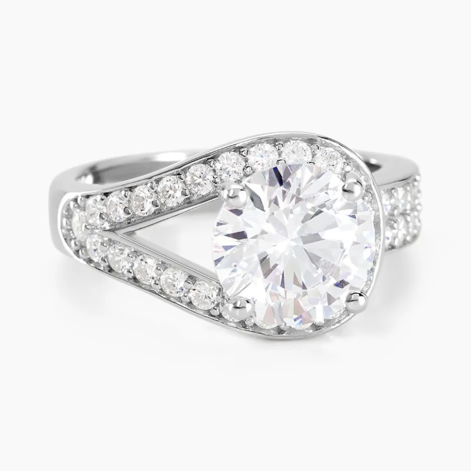 Bague Argent Blanc 925/1000 Boucle Ajourée Oxydes De Zirconium Central Accompagnee Oxydes De Zirconium