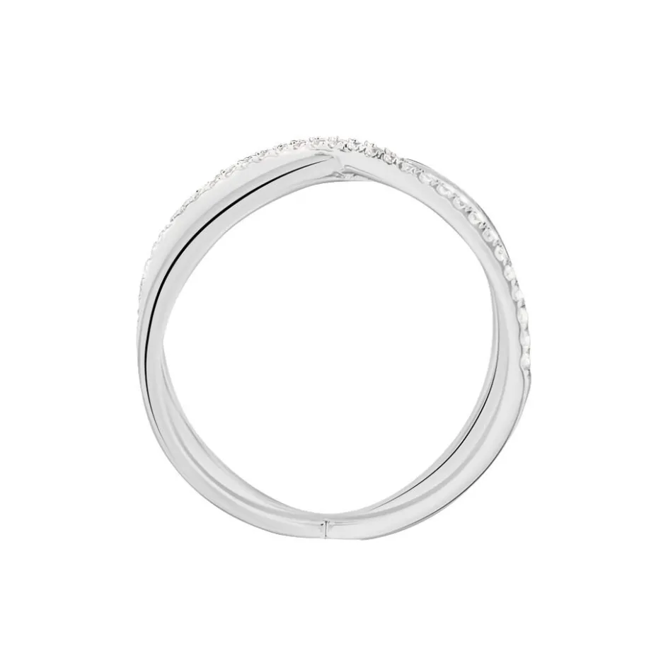 Bague Argent Blanc 925/1000 Deux Anneaux Croises Oxydes De Zirconium