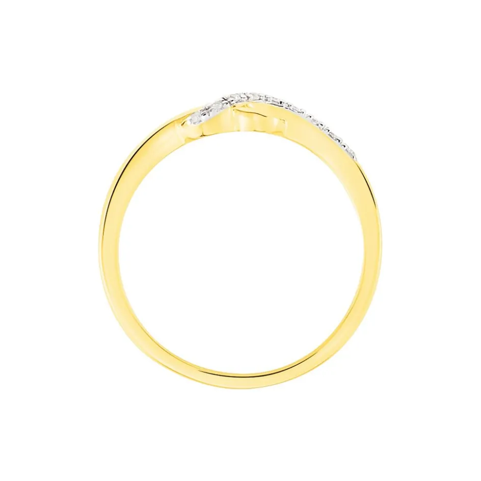 Bague Or Jaune 375/1000 Coeur Et Pavage Diamants
