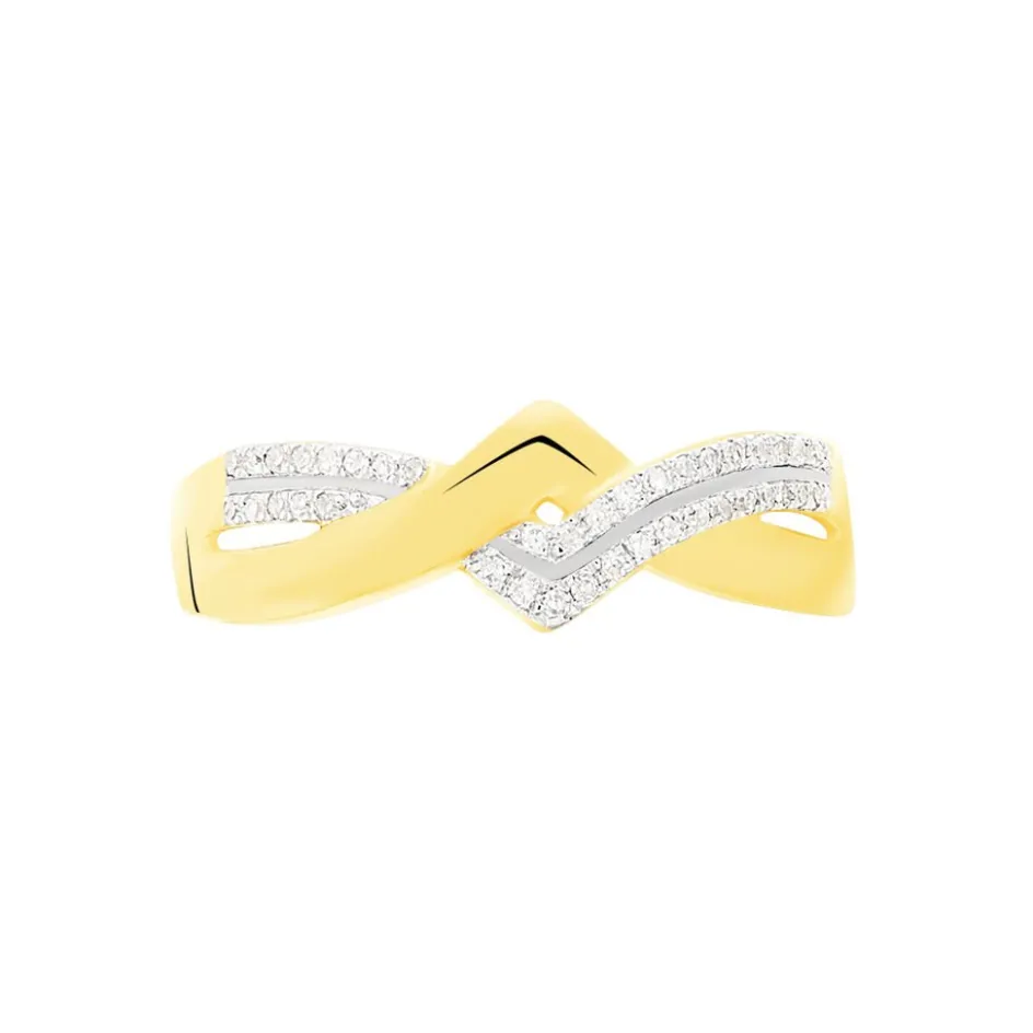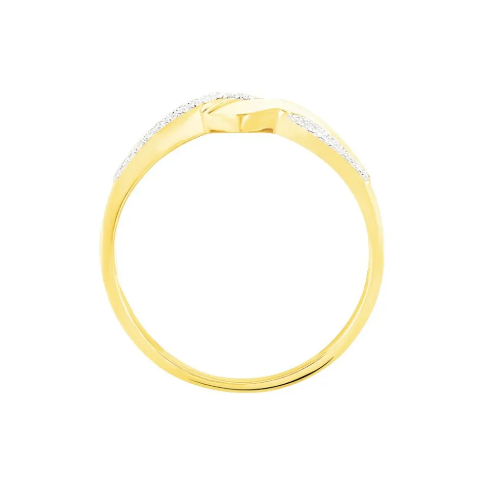 Bague Or Jaune 375/1000 Vagues Entrelacees Semi Pavees Diamants
