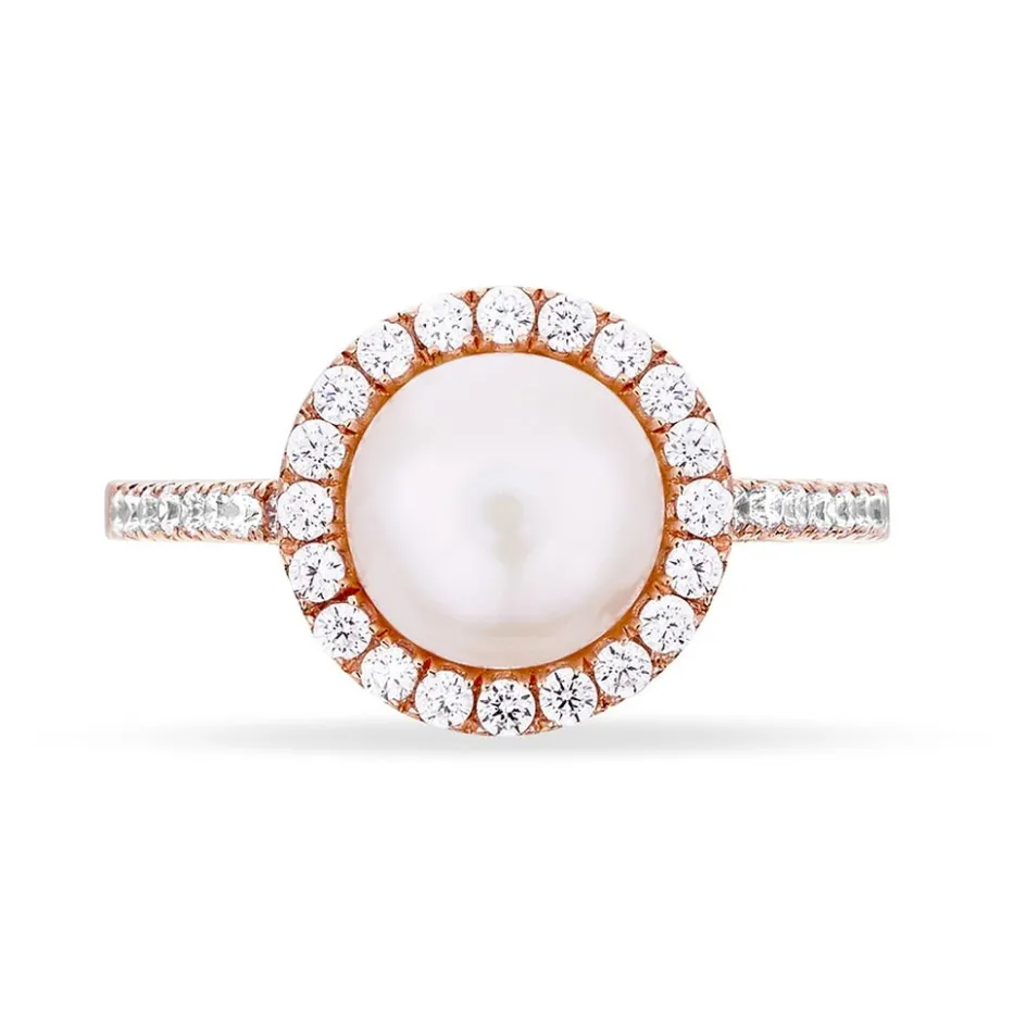 Bague Argent 925/1000 Rose Pendantes Perle De Culture Et Oxydes De Zirconium