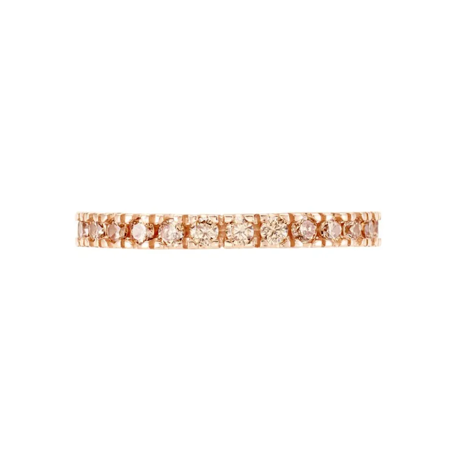 Bague Argent Rose 925/1000 Tour Complet Oxydes De Zirconium Champagne