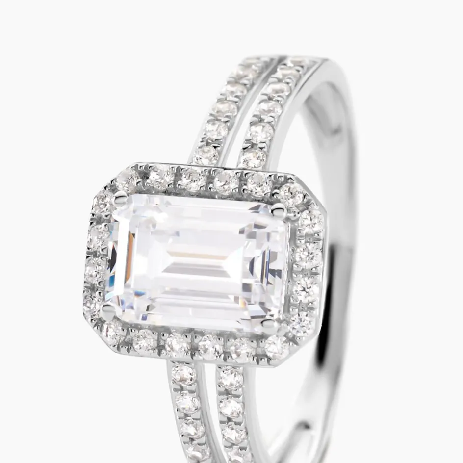 Bague Solitaire Accompagn啪 Or Blanc 375/1000 Oxyde De Zirconium Serti Griffes 1.77cts