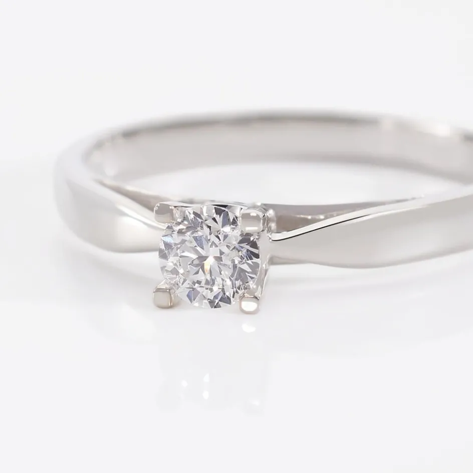 Solitaire Or Blanc 750/1000 Diamant 0.30ct Serti 4 Griffes