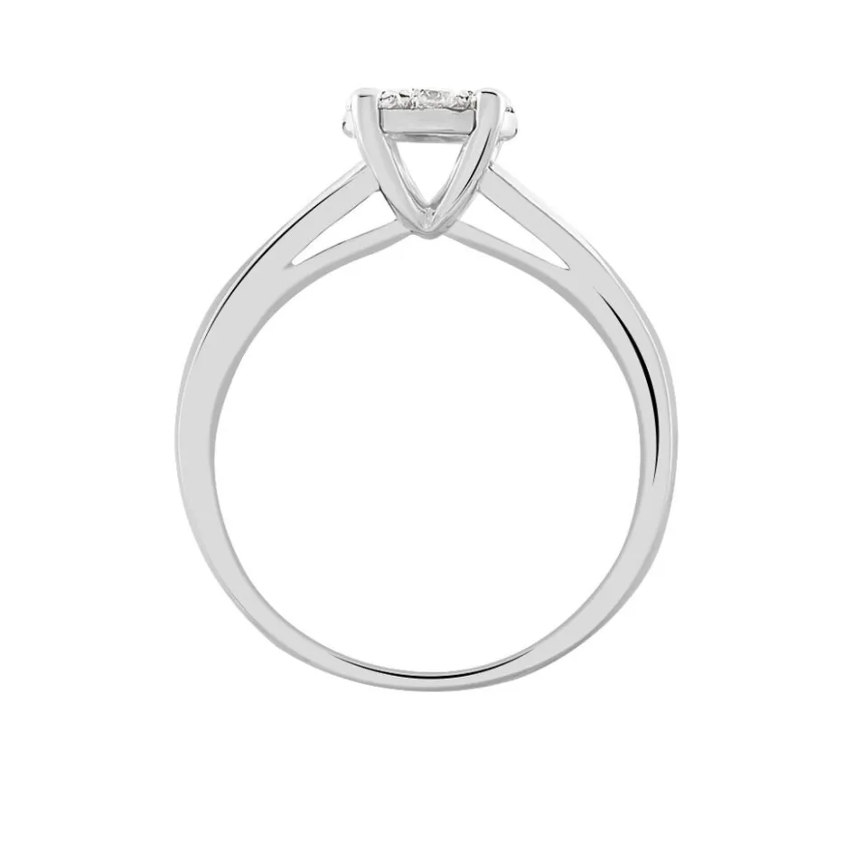 Bague Or Blanc 750/1000 Diamants Synthetique Multi Pierres Effet Solitaire 0.35cts
