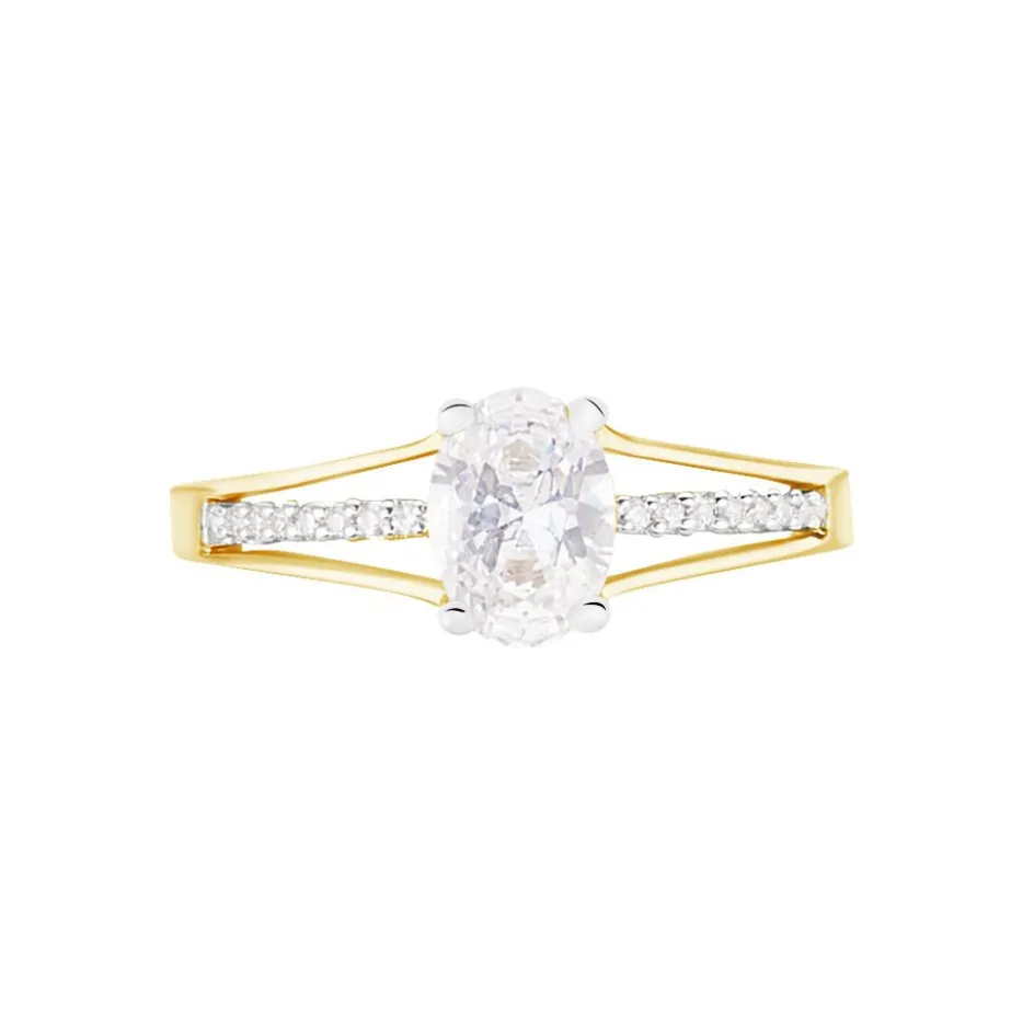 Solitaire Or Jaune 375/1000 Oxyde De Zirconium 4 Griffes Accompagne Corps De Bague 3 Rangs