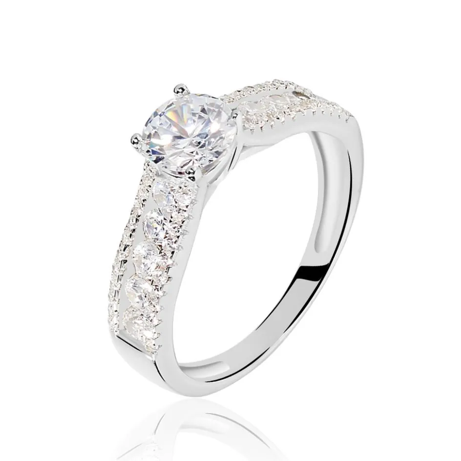 Bague Solitaire Argent Blanc 925/1000 4 Griffes Corps De Bague Oxydes De Zirconium
