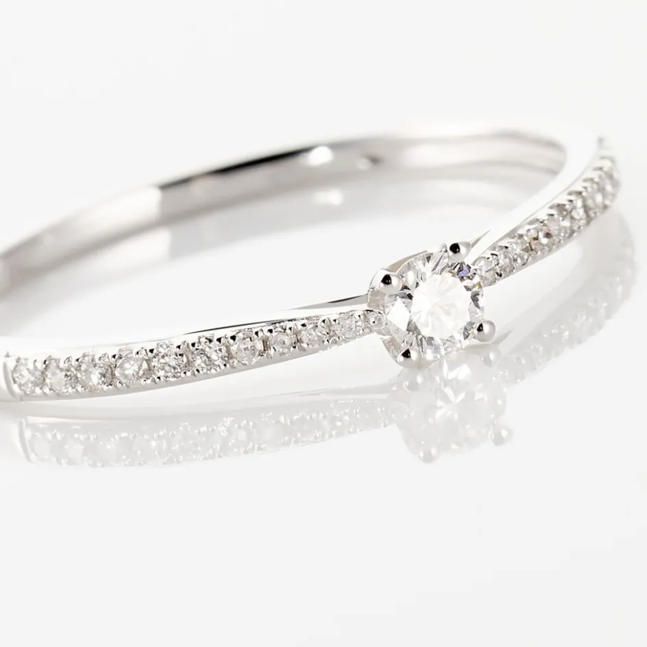 Solitaire Or Blanc 750/1000 Diamant Central 0.10cts Serti Griffes Accompagnes Diamants