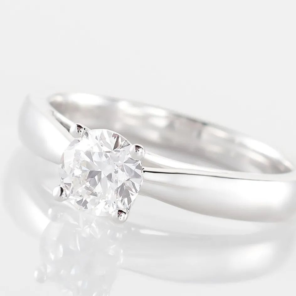 Bague Solitaire Or Blanc 750/1000 Diamant 0.80ct Serti 4 Griffes