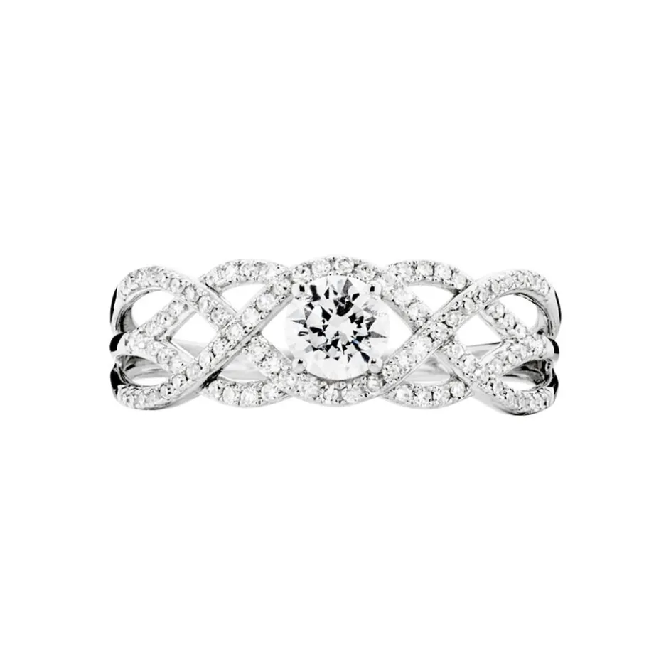 Solitaire Or Blanc 750/1000 Diamant Central 0.3cts Accompagne Diamants Corps De Bague Entrelace