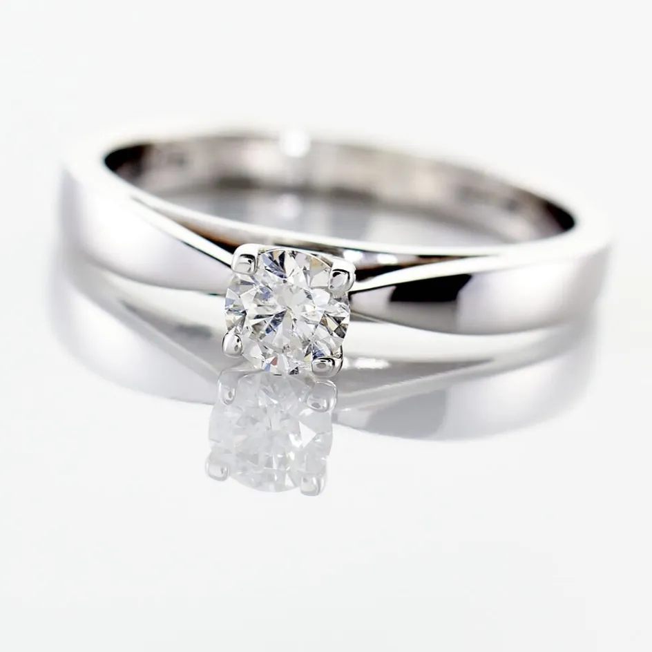 Bague Solitaire Or Blanc 375/1000 Diamant 0.3cts Serti 4 Griffes