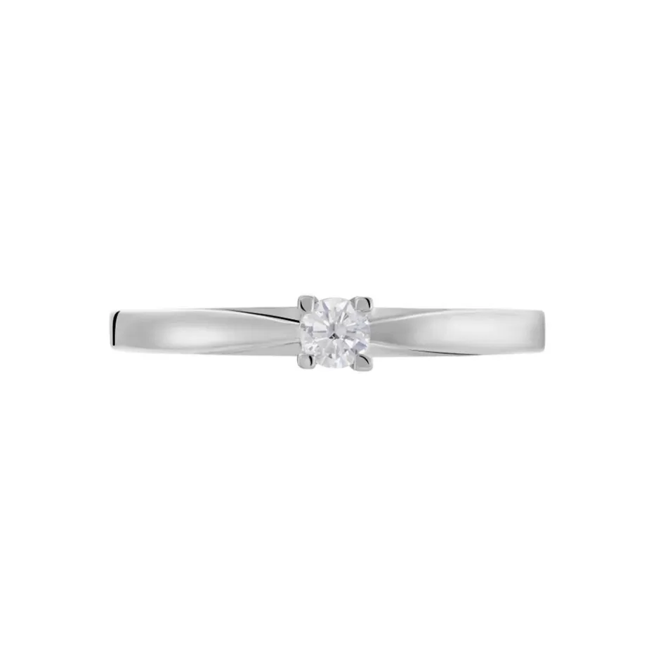 Bague Solitaire Or Blanc 375/1000 Diamant 0.1cts Serti 4 Griffes