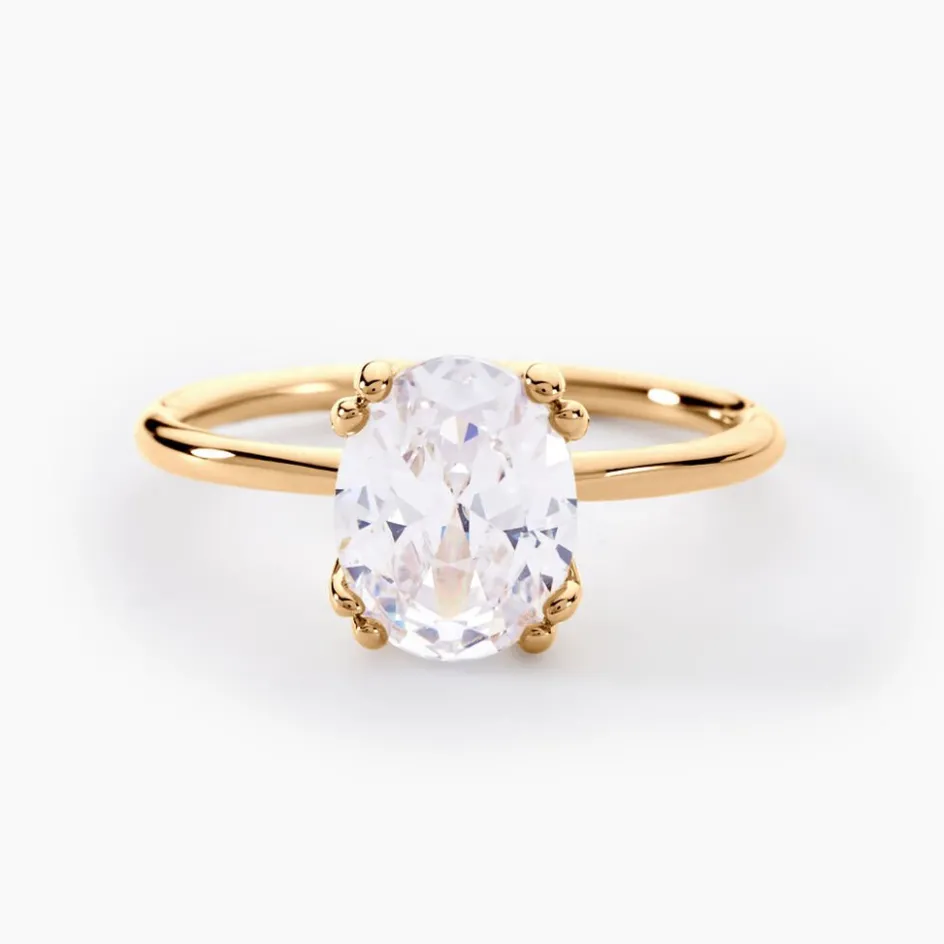 Bague Plaqué Or Solitaire Serti Griffes Oxyde De Zirconium