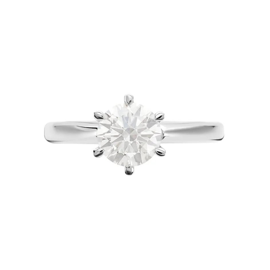 Solitaire Or Blanc 750/1000 Diamant 1 Ct Serti 6 Griffes