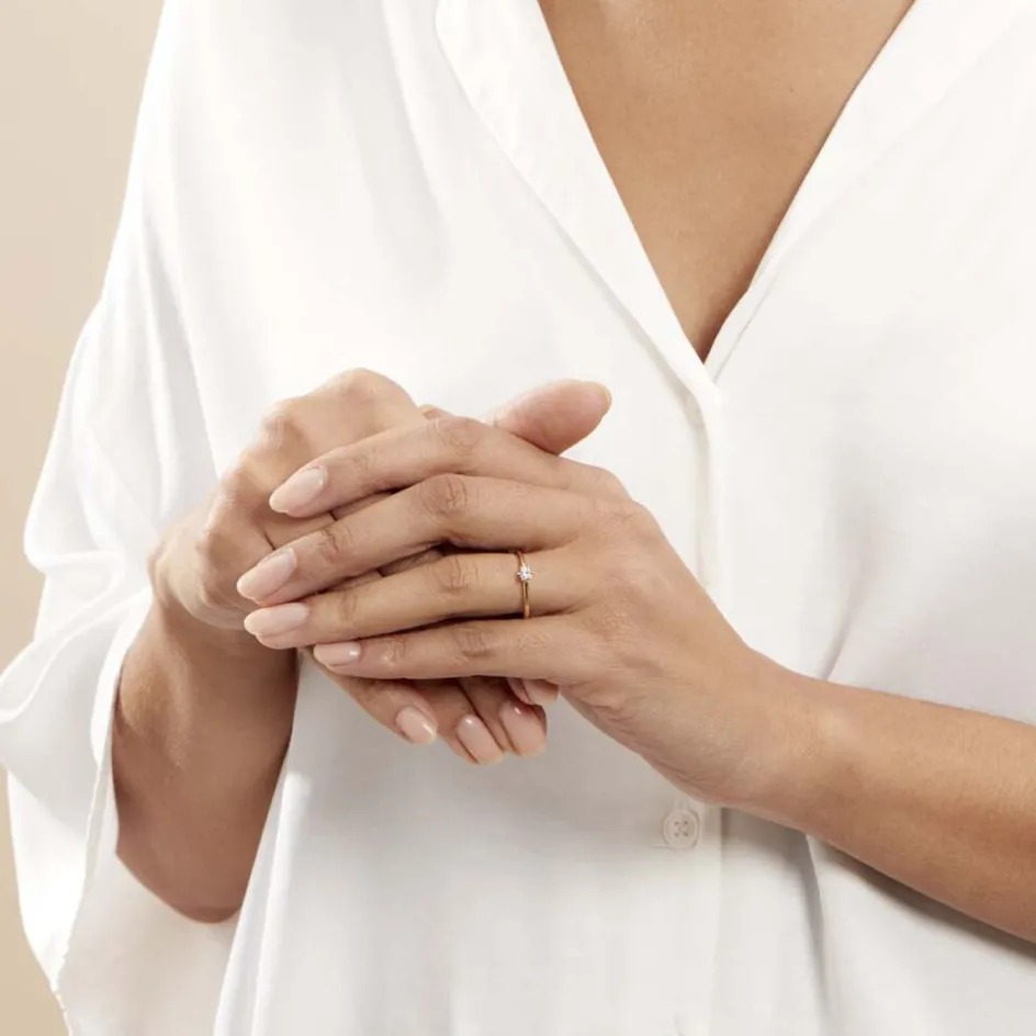 Solitaire Or Jaune 750/1000 Diamant 0.15ct Serti 6 Griffes