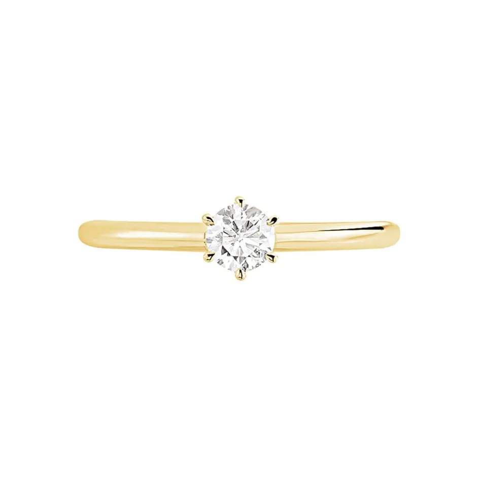 Solitaire Or Jaune 750/1000 Diamant 0.30ct Serti 6 Griffes