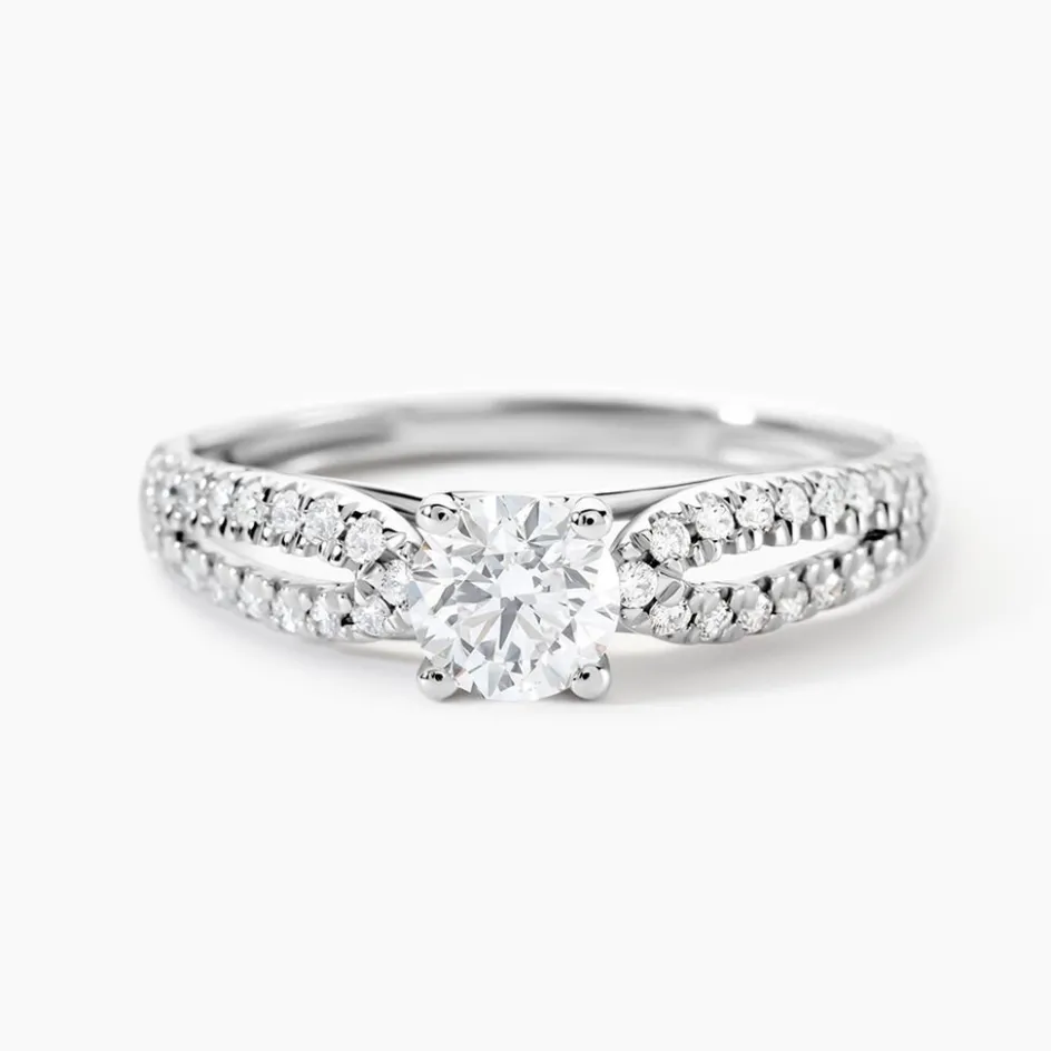Bague Solitaire Platine 950/1000 Diamant Central 0.50ct Serti Griffes Accompagne Diamants