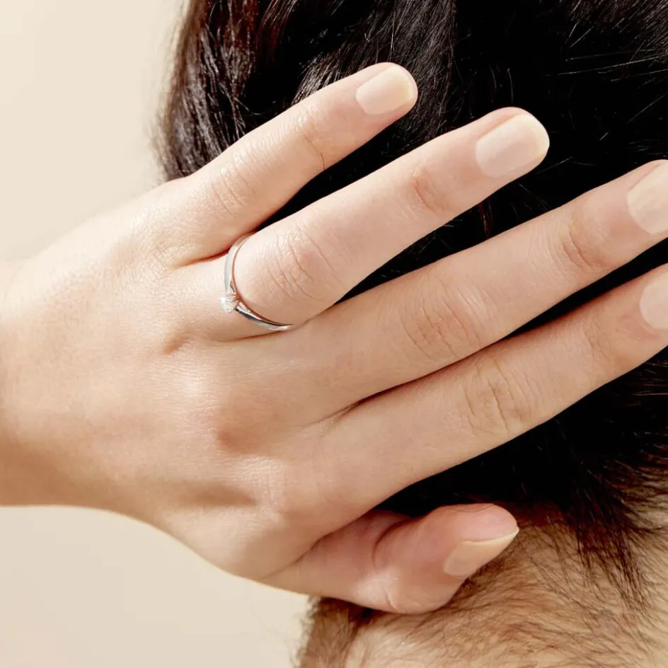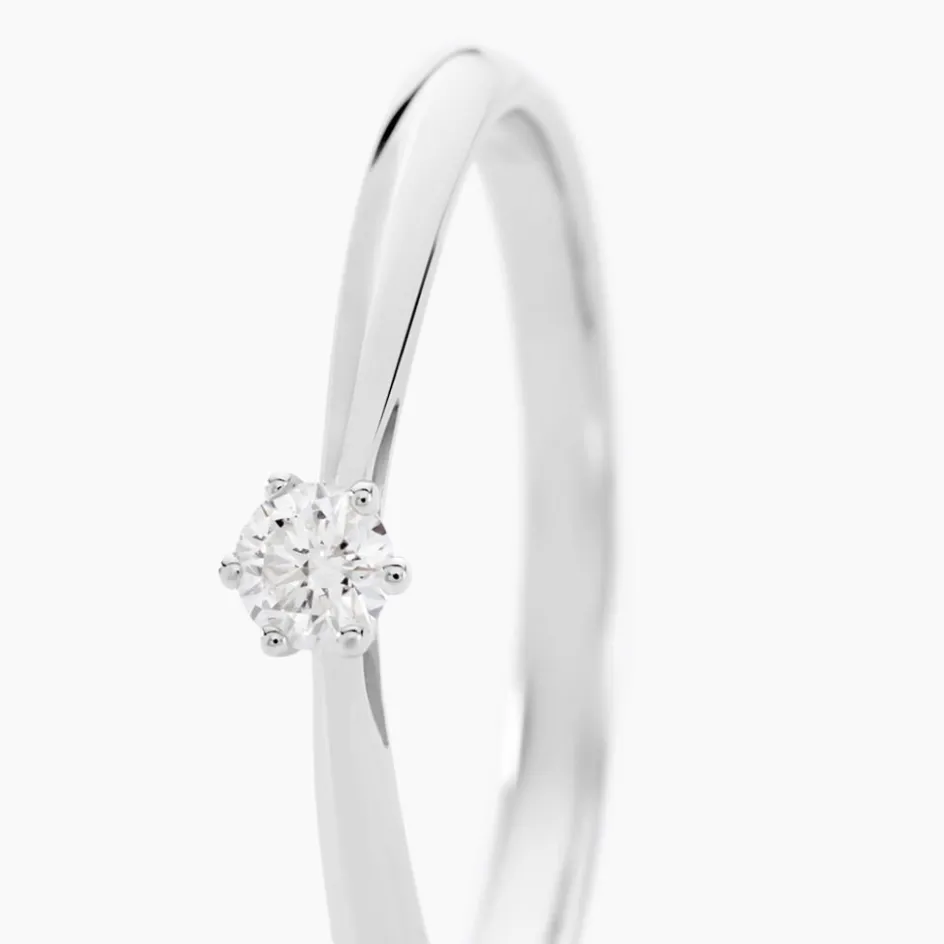 Solitaire Or Blanc 375/1000 Diamant 0.10ct Serti 6 Griffes Corps De Pince