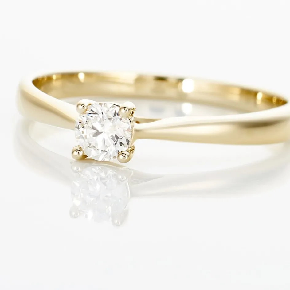 Solitaire Or Jaune 375/1000 Diamant 0.20cts Serti 4 Griffes