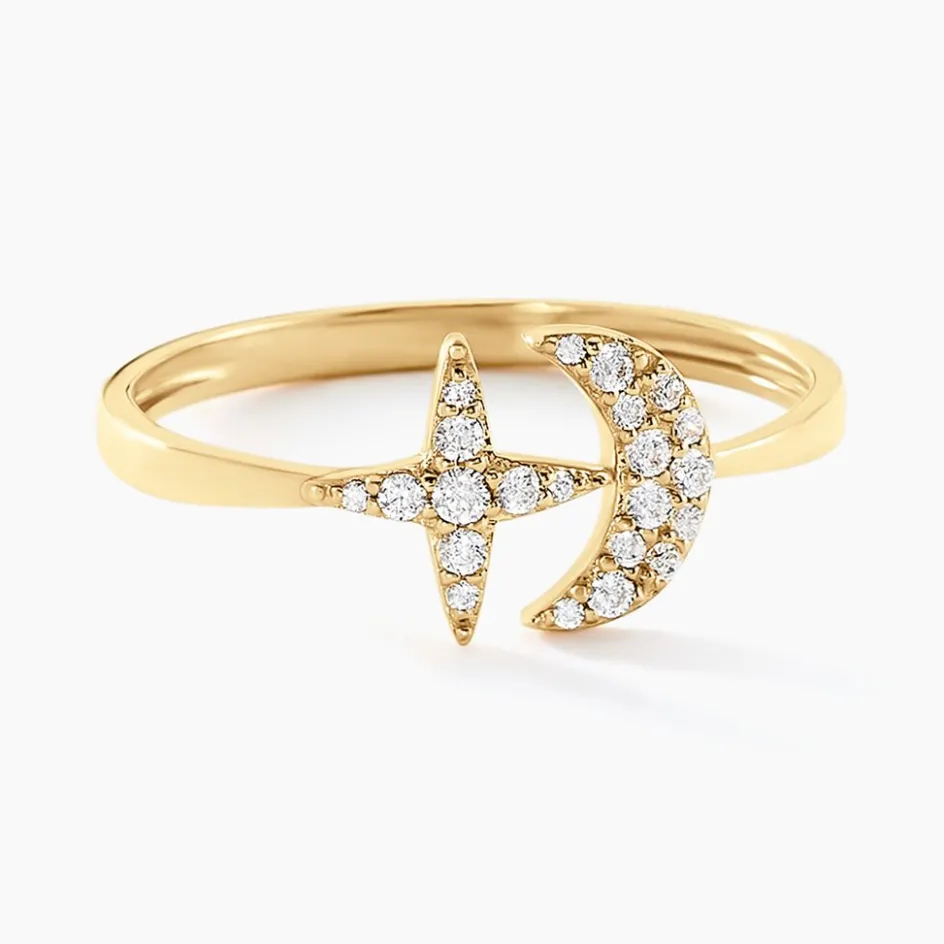 Bague Or Jaune 375/1000 Etoile Et Lune Oxydes De Zirconium Pavage