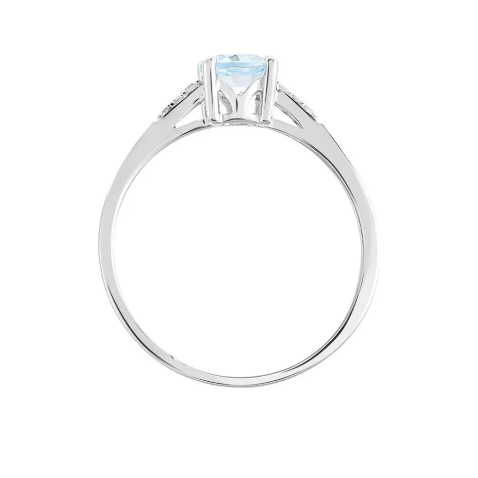 Bague Or Blanc 375/1000 Topaze Bleue Ronde + Oxydes De Zirconium
