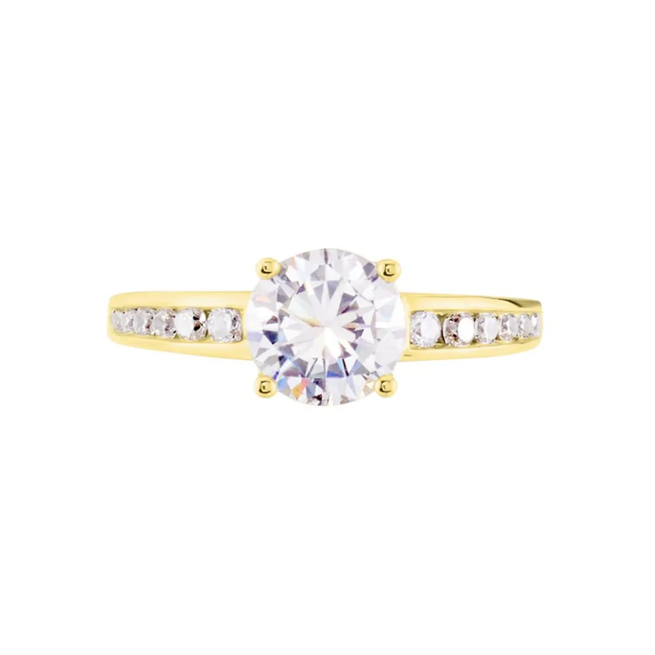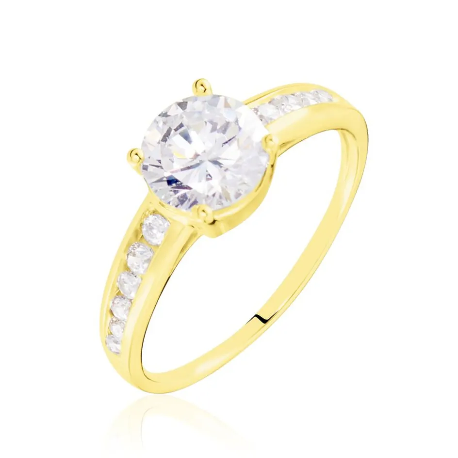 Solitaire Or Jaune 375/1000 4 Griffes Corps De Bague Accompagne Oxydes De Zirconium Serti Rail