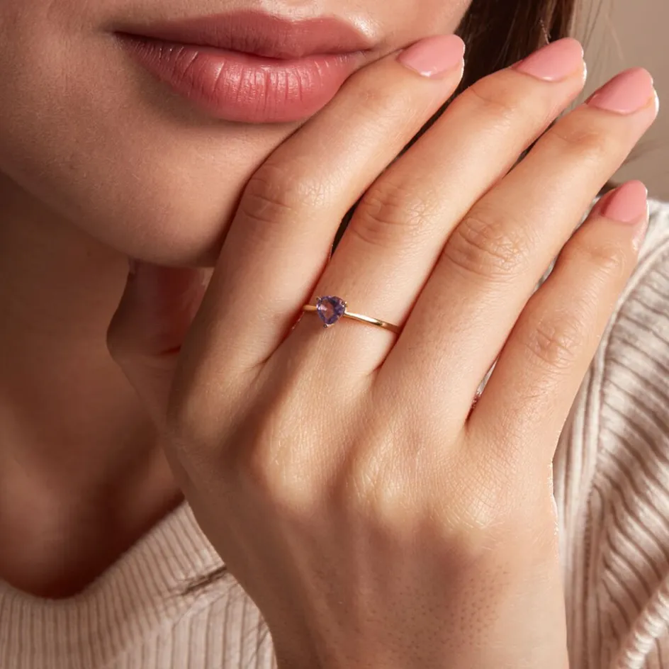 Bague Or Jaune 375/1000 C艙ur Amethyste Serti Griffes