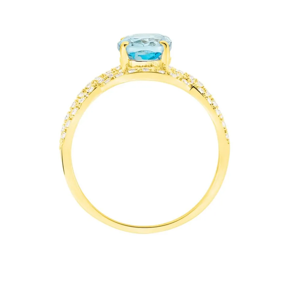Bague Or Jaune 375/1000 Topaze Centrale Ovale Et Oxydes De Zirconium