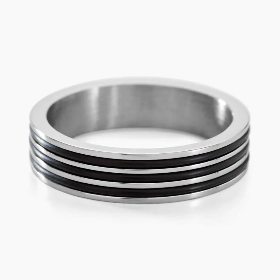 Bague Acier Inoxydable Blanc 3 Bandes Caoutchouc