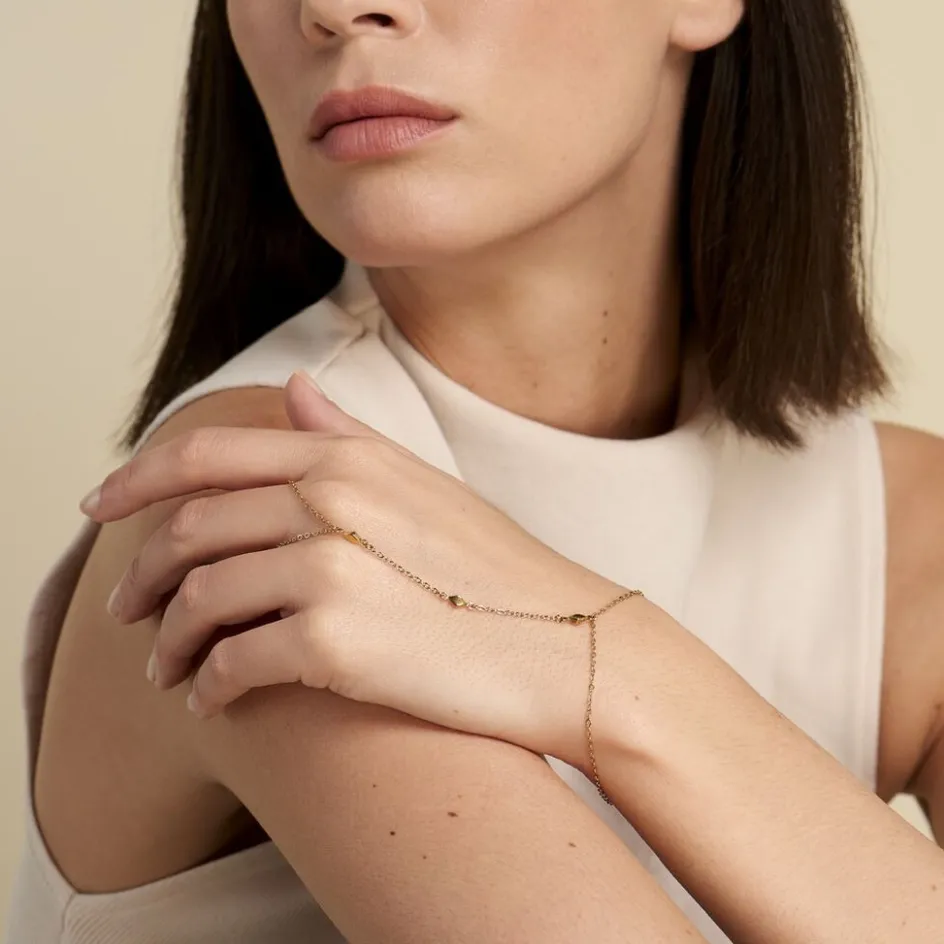 Bijou De Main Acier Inoxydable Jaune Motifs Losanges Chaine Maille Forçat 17+3cm