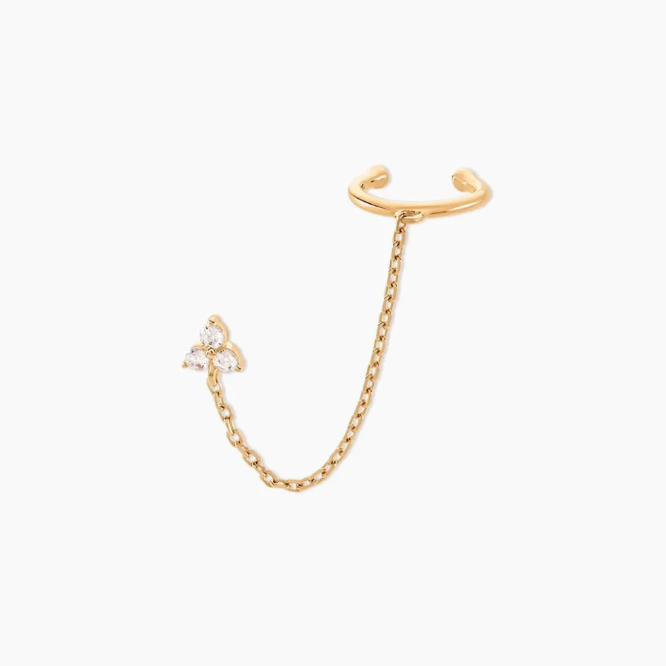 Bijou D’oreille Plaque Or Jaune Bague D’oreille Et Puce Triangle Pavage Oxydes De Zirconium Maille Forcat 3.5cm